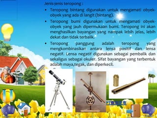 Khairi MIKROSKOP Kanta objek Kanta mata Fo FeFe Fo Fe Perbandingan kanta 1Kanta objek lebih tebal daripada kanta mata M mo x me ALAT OPTIK 2Jarak fokus kanta objek lebih pendek daripada kanta mata 3Kuasa kanta objek lebih besar daripada kanta mata. Benda optikalat optik adalah benda yang menggunakan lensa optik untuk melakukan. Sudut deviasi adalah sudut yang dibentuk oleh perpanjangan sinar datang dan sinar bias yang meninggalkan prisma.